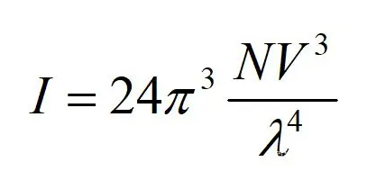 式中,I為散射光強度;N為產生散射光的微粒數;λ為入射光的波長;V為微粒的體積。散射光強度和波長的四次方成反比。隨著微粒直徑的增大,不再遵守瑞利散射定律,而是遵守米氏散射定律,即散射強度與波長無關。